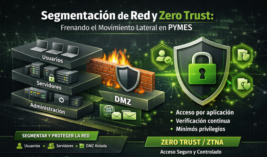 Cuando una pyme sufre una intrusión, el problema rara vez se limita a “un equipo infectado”. El riesgo real aparece cuando el atacante se mueve dentro de la red (movimiento lateral) para encontrar servidores, respaldos, sistemas contables o credenciales con más privilegios. En muchos incidentes de ransomware y robo de datos, ese desplazamiento interno es lo que convierte un evento manejable en una interrupción total del negocio. La buena noticia es que, con decisiones técnicas relativamente alcanzables, se puede reducir drásticamente la superficie de ataque: segmentación de LAN, mínimos privilegios y un enfoque de acceso tipo Zero Trust/ZTNA.