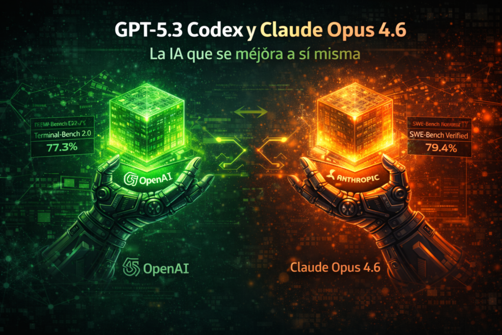 El 5 de febrero de 2026 marcó un hito sin precedentes en la historia de la inteligencia artificial. En un intervalo de apenas 20 minutos, Anthropic y OpenAI lanzaron simultáneamente sus modelos más avanzados: Claude Opus 4.6 y GPT-5.3 Codex, respectivamente. Lo extraordinario no radica únicamente en sus capacidades técnicas superiores, sino en un aspecto que transforma radicalmente el panorama tecnológico: ambos modelos demuestran capacidades de auto-mejora recursiva, es decir, pueden participar activamente en el desarrollo de sus propias versiones futuras.